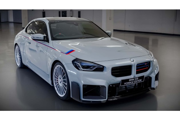 Der BMW 333i Homage beruht auf dem M2 und ist mit einem 3,0-Liter-Reihensechszylinder ausgestattet, der 353 kW (480 PS) und 600 Nm Drehmoment liefert. Er erreicht 100 km/h aus dem Stand in nur 4,0 Sekunden.
