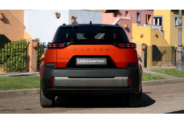 Ein wenig individueller geht es an der Front mit Subarus sechsteiligen Scheinwerfern und einer Art angedeutetem Grill mit Logo zu. Am Heck des Uncharted taucht das sechsteilige Stilelement in den Heckleuchten wieder auf. Zudem verzichtet Subaru auf ein durchgehendes Leuchtband.