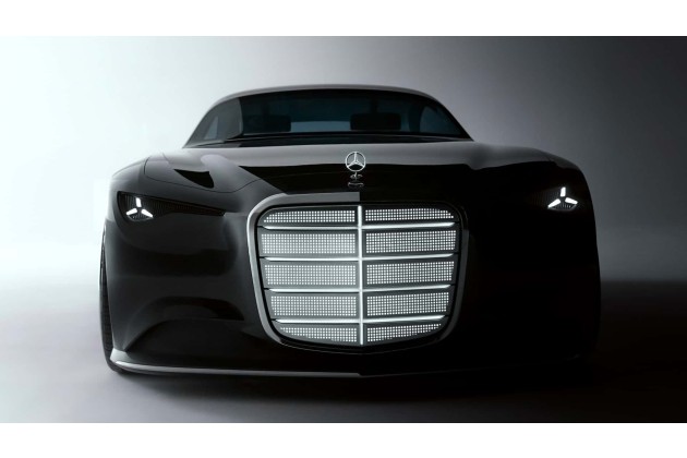 Seine lange Motorhaube erinnert an die Grand Tourer der Vorkriegszeit. Der gewaltige beleuchtete Kühlergrill ist eine Neuinterpretation der legendären aufrechten Kühlergrills von Fahrzeugen wie dem W108, W111 und dem 600 Pullman. Er dürfte - im positiven Sinne - hohe Wellen schlagen. Auch der Stern auf der Motorhaube erinnert an die gute alte Zeit. Er ist ebenfalls beleuchtet.