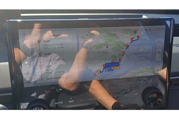 Bei einer Ladeplanung ins etwa 1.000 km entfernte Barcelona wurden sieben Stopps eingezeichnet, die sich auf die gesamte Strecke verteilten, aber die Abstände waren ebenfalls viel zu gering. Der herbeigerufene Pressesprecher gab mir beim gemeinsamen Erproben zunächst recht. Als er es später nochmal in einem anderen Auto mit dem Ziel Barcelona versuchte, kam eine Route mit vier Stopps heraus. Vermutlich hatten die Fahrzeuge also verschiedene Softwarestände.