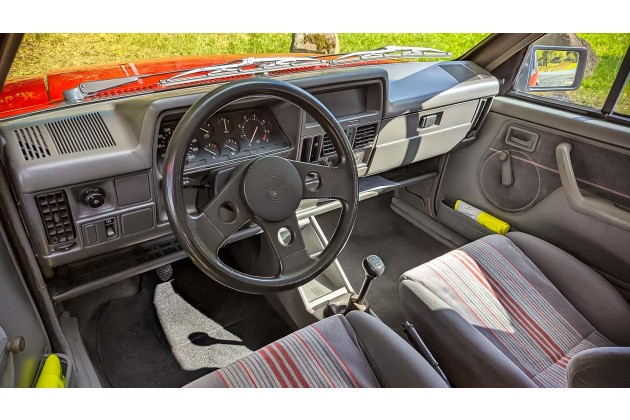 Im Innenraum sorgen Sportsitze mit speziellem Stoffbezug, ein dreispeichiges Sportlenkrad und eine Instrumententafel mit Drehzahlmesser, Öldruckanzeige und Voltmeter für den sportlichen Anspruch.