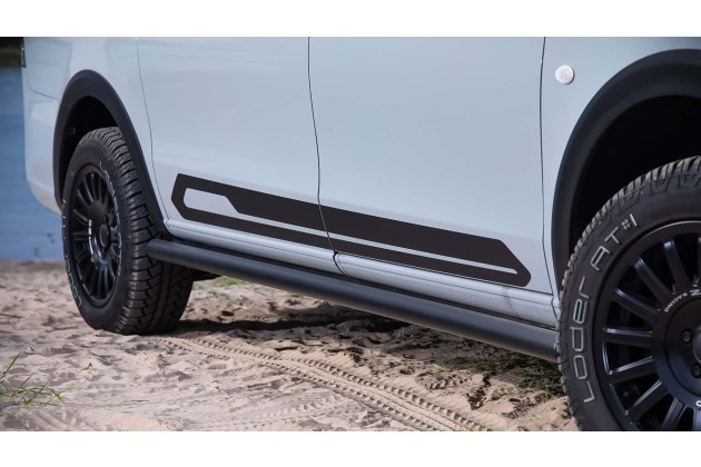 Wer seine Freizeit gern aktiv gestaltet, wird am optionalen Dachträger Gefallen finden. Gefertigt aus Aluminium, trägt er eine dynamische Dachlast von 125 Kilogramm - genug für Surfboards, Kajaks oder die sperrige Skibox. Und weil Vansports auch an die kleinen Fluchten denkt, gibt es auf Wunsch einen durchdachten Camping-Ausbau.