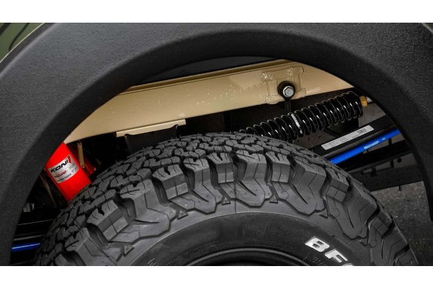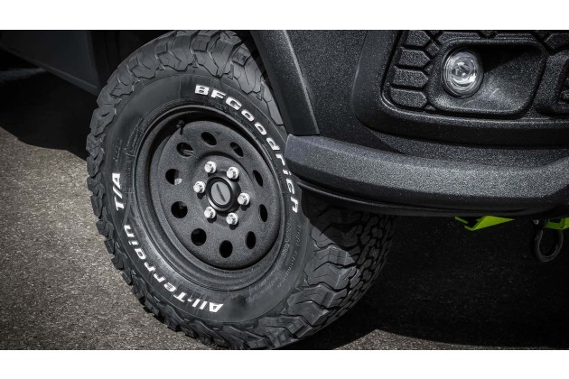 Vorne prangt ein neu geformter Stoßfänger mit robuster Raptor-Beschichtung, dazu Kühlergrill und Seitenschürzen im gleichen Stil. Hochleistungsscheinwerfer sitzen im Grill, eine Lightbar ziert die Motorhaube, und ein markanter Luftansaugschnorchel sorgt nicht nur für saubere Luft, sondern auch für das passende Abenteuerprofil.