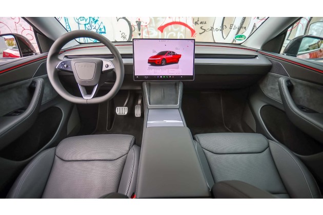 Das Bedienkonzept folgt dem Tesla‑Prinzip: fast alles läuft über den neuen, verbesserten zentralen Touchscreen. Dieser ist reaktionsschnell, intuitiv und mittlerweile deutlich übersichtlicher als in früheren Versionen. Die Schriftgröße lässt sich anpassen - ein hilfreiches Detail, denn viele Anzeigen sind standardmäßig eher klein geraten.