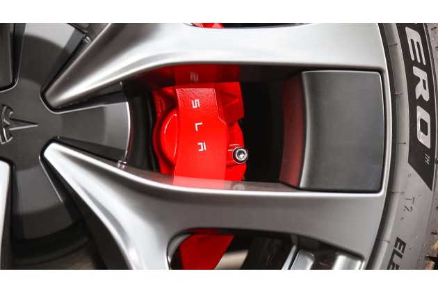 Die Reifen - neu entwickelt und unterschiedlich dimensioniert für Vorder‑ und Hinterachse - sind auf Effizienz und Handling getrimmt. Sie bieten ordentlichen Grip, beginnen bei ambitionierter Fahrweise jedoch früh zu rutschen. Für ein Performance‑Modell hätte man sich hier etwas mehr Reserven gewünscht. Die Bremse hingegen passt von ihrer Leistung perfekt, überrascht jedoch durch einen sehr hohen Kraftaufwand bei starker Bremsung.