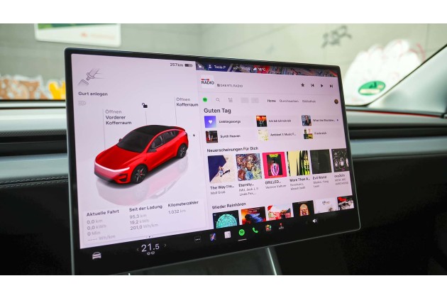 Was weiterhin fehlt, ist Unterstützung für Apple CarPlay oder Android Auto. Tesla setzt auf sein eigenes Infotainmentsystem, das mittlerweile viele Apps bietet, aber insbesondere bei der Navigation nicht mit Google oder Apple mithalten kann. Verkehrsinformationen und Routenführung sind häufig unpräzise oder veraltet.