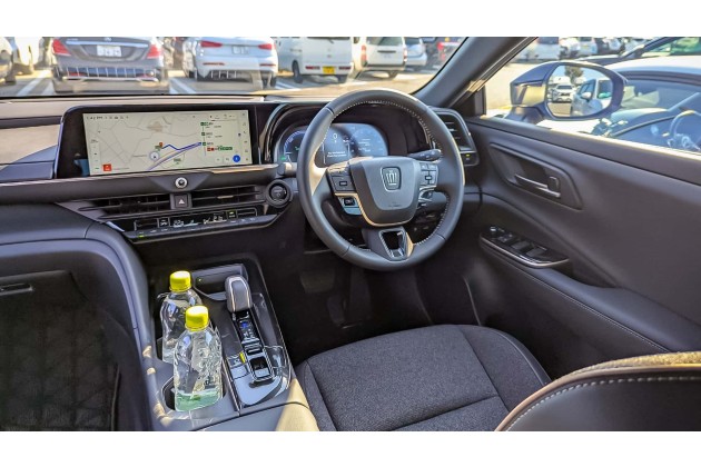Ich sehe mir meinen fahrbaren Untersatz an: Fließheck-Optik, aber mit kleiner Kofferraumöffnung per Deckel. In jedem Fall ist die Crown Limousine exakt 5,03 Meter lang, 1,89 Meter breit und 1,47 Meter hoch. Hervorragende Abmessungen für eine Mega-Metropole. Ironie aus. Ich zwänge mich auf der rechten Seite hinter das Lenkrad. Und versuche meine Beine einzufädeln. Irgendwie wäre jetzt mehr Höhenverstellung toll. Mein linkes Bein kuschelt mit der massiven Mittelkonsole.