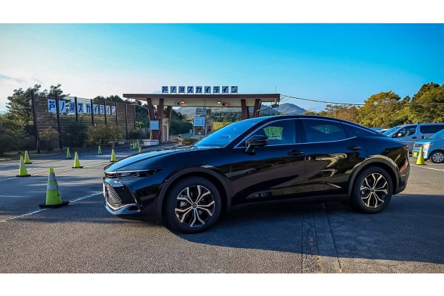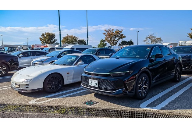Zum Glück habe ich mich vorbereitet: Am Hanozono-Schrein in Shinjuku erwarb ich zwei Amulette für Sicherheit im Straßenverkehr, eines für meinen Beifahrer. Da kann ja eigentlich nichts schiefgehen. In der Autovermietung warten vier brandneue schwarze Toyota Crown Limousinen auf unsere Gruppe. Quasi der VW Passat Japans, die 16. Generation des Crown erschien 2023, inzwischen ist Crown eine Submarke im Toyota-Reich.
