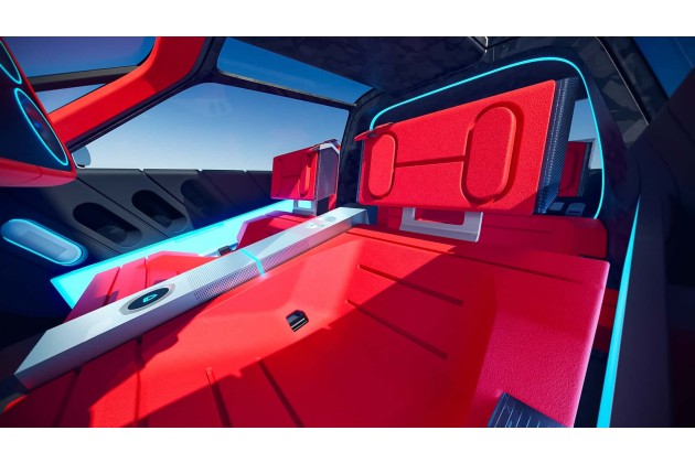 Im Cockpit gibt es ein individuell anpassbares Armaturenbrett. So gibt es spezielle Halterungen für Mobiltelefone, Kopfhörer, Mützen, Rucksäcke oder Skateboards - Pate dafür stand möglicherweise das YouClip-System des Dacia Spring und des Renault Twingo.