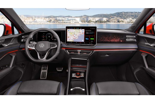 Auch das Interieur des Tiguan wurde vollkommen neu konzipiert und designt. Es ist geprägt von einer hohen Material- und Verarbeitungsqualität. Darüber hinaus wurde das Cockpit deutlich digitaler. Zu den Modulen gehören das neue "Digital Cockpit" (entspiegelte digitale Instrumente im Tablet-Querformat), ein bis zu 15 Zoll großer Touchscreen (12,9 in der Basis), ein Head-up-Display und ein neuer, multifunktionaler Fahrerlebnisschalter mit integriertem OLED-Display. Über diesen neuen Drehregler mit eigenem Mini-Bildschirm können Fahrmodus, Radiolautstärke oder auch Farben der Ambientebeleuchtung gesteuert werden.