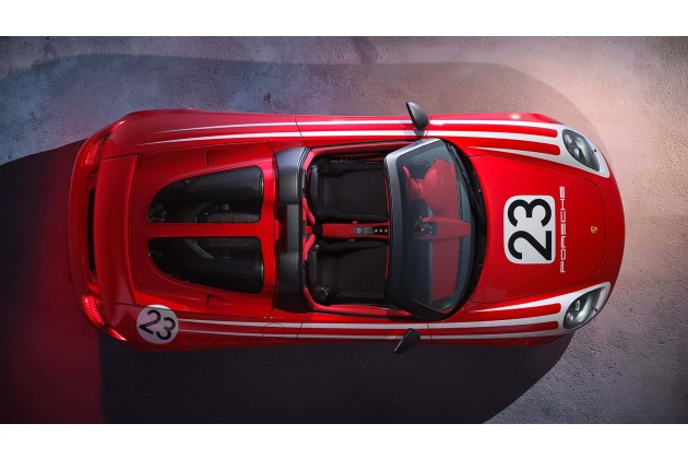 Parallel dazu erhielt das Fahrzeug ein historisch inspiriertes Farbkonzept, das sich am sogenannten Salzburg-Design orientiert. Diese rot-weiße Lackierung erinnert an den Porsche 917 Kurzheck mit der Startnummer 23, der 1970 den ersten Gesamtsieg für Porsche beim 24-Stunden-Rennen von Le Mans erzielte.