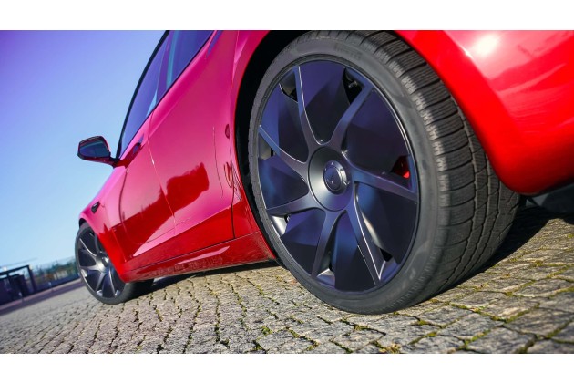 Das Model S ist seit 2012 im Programm und damit für Verhältnisse der Elektromobilität ein Methusalem. Trotzdem wirkt das Exterieur immer noch top modern, was auch an den Modellpflegemaßnahmen liegt. Vor allem das Plaid-Modell mit seinen schwarzen Applikationen, dem Frontschwert und der Carbon-Abrisskante sieht ziemlich scharf aus. Ist natürlich Geschmacksache. Mit gut fünf Metern Länge und 2,19 Metern Breite ist der Plaid ein ausgewachsenes Luxusschiff. Die flache Silhouette mit nur 1,43 Metern Höhe unterstreicht den sportlichen Charakter. Die 21 Zoll großen, schwarzen Räder passen perfekt dazu.