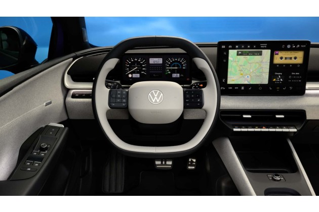 VW zeigt erstmals das Cockpit des neuen ID. Polo. Der Elektro-Kleinwagen bekommt große Displays mit netten Retro-Anzeigen, zahlreiche physische Bedienelemente und neue Lenkrad-Tasten. Damit reagiert Volkswagen offenbar auch auf die Kritik zum Cockpit des VW ID.3.