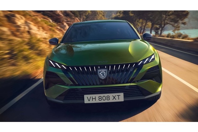 Kühlergrill und Stoßfänger wurden überarbeitet und nutzen unterschiedliche Oberflächenstrukturen in Schwarz. Die untere Stoßfängerkante ist trapezförmig ausgeführt. Je nach Ausstattung und Antrieb rollt der Peugeot 408 auf 17-, 19- oder 20-Zoll-Leichtmetallfelgen. Hybrid- und Plug-in-Hybridversionen sind mit spezifischen Felgendesigns erhältlich. Neu im Farbangebot ist "Flare Green" (siehe Bilder), ein Farbton mit wechselnder Wirkung je nach Lichteinfall.