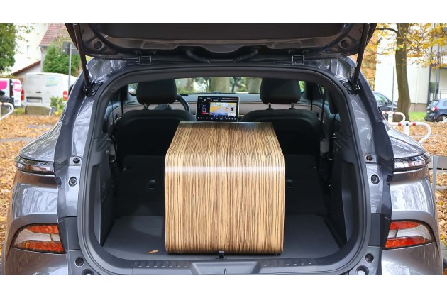 Hinten sitzt es sich bis zu Größen von 1,80 Meter recht bequem. Der Kofferraum ist mit seinen 423 Litern Ladevolumen gut ausgestattet. Ladekabel finden unter der ersten Abdeckung in einem Extraabteil Platz. Sperrige Güter kriegt der kompakte Vietnamese ebenfalls hin. Mittels Umklappen der Rückbank entsteht eine recht ebene Fläche von 1.576 Litern. Das reicht dicke für 'nen stylischen Wohnzimmertisch.
