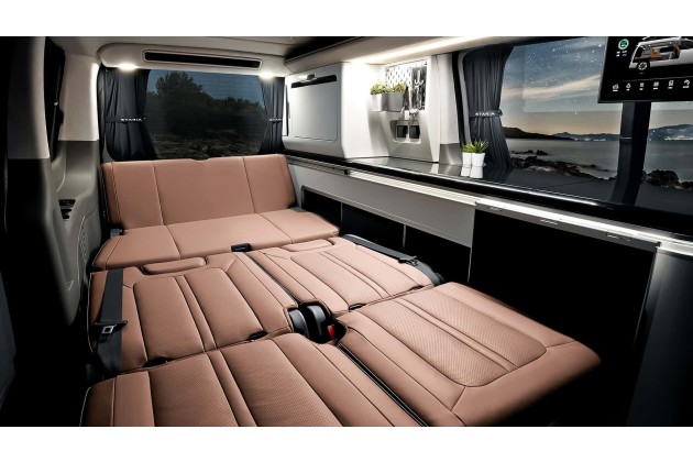 Die geschätzte Reichweite liegt laut WLTP bei rund 400 Kilometern, was dem Camper eine ordentliche Etappe zwischen zwei Ladepunkten ermöglicht. Dazu kommen Modifikationen an der Radaufhängung und zusätzliche Dämmmaterialien, um den Reisekomfort noch einmal deutlich zu steigern.