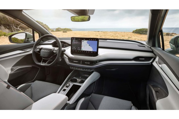 Der Elroq 85 hat serienmäßig die größten Räder; die Alufelgen messen hier 19 Zoll. Standard sind hier auch LED-Licht, Parkpiepser vorn und hinten, Rückfahrkamera, Zwei-Zonen-Klimaautomatik, Sitz- und Lenkradheizung, elektrisch einstell-, beheiz- und anklappbare Außenspiegel. Die "Phone-Box" mit induktivem Handy-Laden kostet hier Aufpreis.