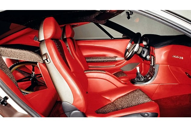 Der Innenraum wurde zu großen Teilen vom 166 abgeleitet. Eine hochwertige Materialverarbeitung und originelle funktionale Lösungen interpretieren die Serie jedoch neu. Rotes Leder prägt die gesamte Optik, der obere Bereich des Armaturenbretts nutzt ein atmungsaktives technisches Gewebe. So soll ein Aufheizen des Innenraums reduziert werden.