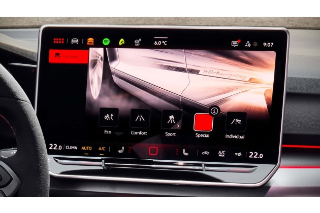Das DSG machte auf der Landstraße und grundsätzlich beim Hochschalten einen sehr guten Job, bei Maximalbelastung auf der Rennstrecke hakte es aber hin und wieder beim Runterschalten. Zudem hätte man bei der an sich gelungenen Sondermodellisierung des Innenraums endlich mal vernünftige Lenkradpaddles verbauen können. Es bleibt leider bei den bekannt mickrigen Plastik-Teilen.