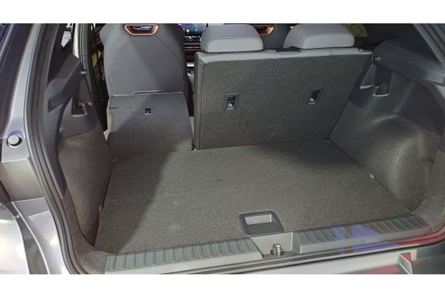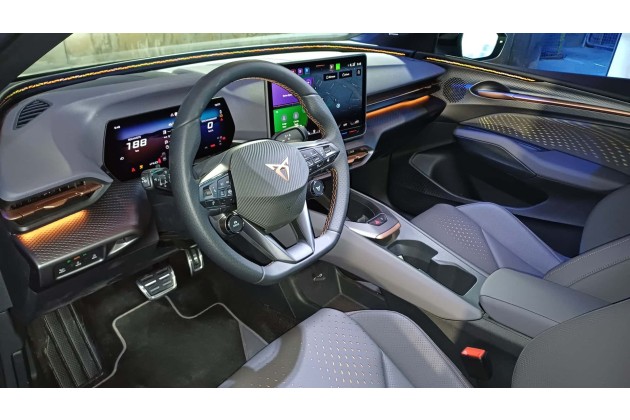 Dabei fielen uns die schicken Mattlackierungen auf, die mehrfarbigen Felgen mit anodisierten Elementen in Gelbgrün oder Kupfer sowie die verschiedenen Versionen des Cupra-Logos vorne auf der Haube: Es gibt eine schwarze, eine kupferfarbene und eine illuminierte Version, bei der auch noch vier Lichtschlitze vorne hinzukommen. Innen beeindrucken die projizierten Grafiken an den Türinnenseiten, die im Prinzip an die Projektortechnik in den neuen Mini-Modellen erinnern, zusätzlich aber animiert und konfigurierbar sind. Bemerkenswert ist auch der sehr tiefe Kofferraum.