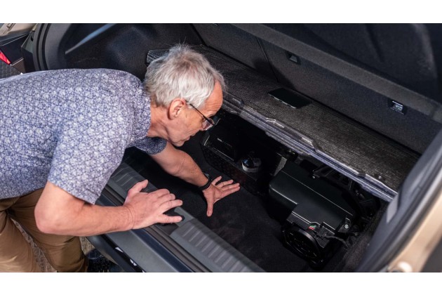 Darunter gibt es noch ein sehr tiefes und geräumiges Fach, das an den Ford Puma Gen-E und seine Megabox erinnert - dieser hat ebenfalls eine Verbundlenkerachse, während zum Beispiel der Renault 5 eine Mehrlenker-Hinterachse besitzt.