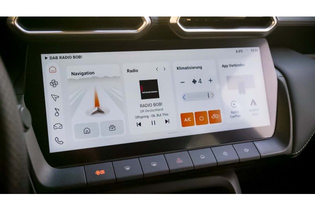 Für gewisse Funktionen wie etwa die Lautstärke sind große physische Tasten darunter angebracht. Eine Klimaautomatik gibt es nicht, die manuelle Klimaanlage wird per Touch gesteuert. In "Comfort" ist eine 360-Grad-Kamera inklusive, die Linse der Rückfahrkamera ist leider zu tief angebracht.