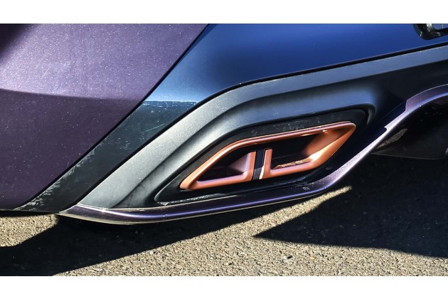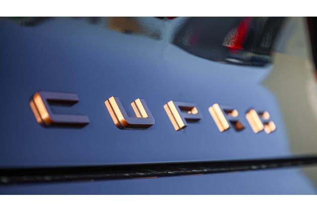 Am Heck sorgt das durchgehende Leuchtband mit beleuchtetem Cupra-Schriftzug für eine stimmige Signatur, die vor allem nachts Wirkung zeigt. Die 19-Zoll-Leichtmetallräder in Polar Black mit Kupferakzenten passen zum sportlichen Auftritt und betonen die tiefe Lage. Ebenfalls Kupfer tragen die angedeuteten Endrohre.