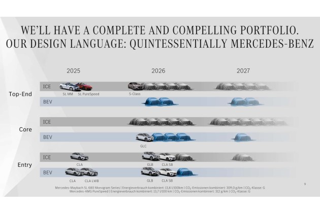 Am gestrigen Donnerstag gab Mercedes einen Überblick darüber, welche Modelle man 2026 und 2027 "launchen" will. Danach sollen 2026 sechs neue Elektroautos (BEVs) starten, drei weitere dann 2027. Das geht aus den Präsentationen zum Geschäftsbericht für 2025 hervor.