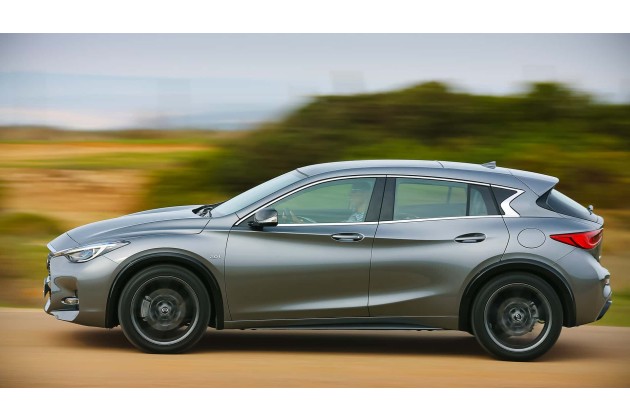 Obwohl die technische Basis stark an Mercedes angelehnt war, entwickelte Infiniti ein eigenständiges Design. Charakteristisch sind geschwungene Linienführungen und stark modellierte Seitenflächen. Abmessungen und Radstand entsprechen weitgehend den Plattformspendern; mit 2,70 Metern Radstand bewegt sich der Q30 auf dem Niveau der A-Klasse und ihres SUV-Ablegers.