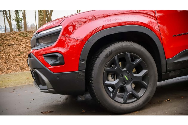 Wenn wir genau hinsehen, erkennen wir in der Seitenlinie des Jeep Avenger 4xe schon deutliche Muster des Citroën C3. Das klingt ein wenig skurril, da wir hier nicht von einem Budget-Kleinwagen sprechen, sondern von einem kleinen Geländewagen. Aber machen wir uns nichts vor, Jeep hat hier an vielen Ecken gute Arbeit geleistet, um die Plattform-Verwandtschaft zu vertuschen.