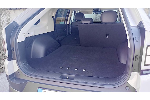 Obwohl die Brennstoffzellen, die Wasserstoffbehälter und die Batterie untergebracht werden mussten, hat der Nexo doch ein gutes Platzangebot. Im Fond habe ich als 1,75 m große Testperson locker Platz, und der Kofferraum bietet mit 510-1.630 Liter ähnlich viel Platz wie der Ioniq 5 (520-1580 Liter). Besonders positiv finde ich, dass der Ladeboden nach dem Umklappen der Rücksitze komplett eben wird.