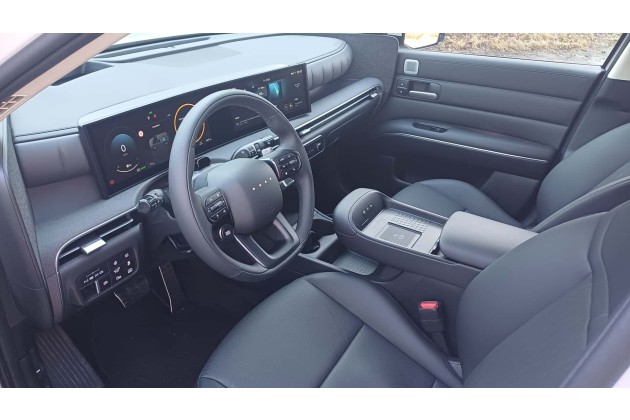 Ein neues Element ist die serienmäßige dedizierte V2L-Steckdose rechts hinten, über die man externe Verbraucher mit Strom versorgen kann : Anders als beim Ioniq 5, bei dem man den Strom über den Ladeport entnimmt, ist hier kein Adapter mehr nötig. Dieses Element soll es auch bei anderen Hyundai-Modellen geben.
