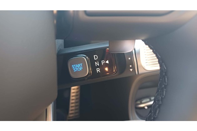 Eine andere Möglichkeit ist der neue Digital Key 2. Damit kann man das Handy als Schlüssel nutzen; das funktioniert mit Ultra-Wide-Band-Technik (UWB) oder NFC. Wenn das Handy UWB unterstützt, kann es beim Systemstart in der Tasche bleiben, ansonsten wird NFC verwendet und man muss es auf die Mittelkonsole legen. Nach der Authentifizierung kann man das System per Knopf an dem Hebel rechts am Lenkrad starten. Zum Losfahren dreht man den gleichen Hebel auf "D".