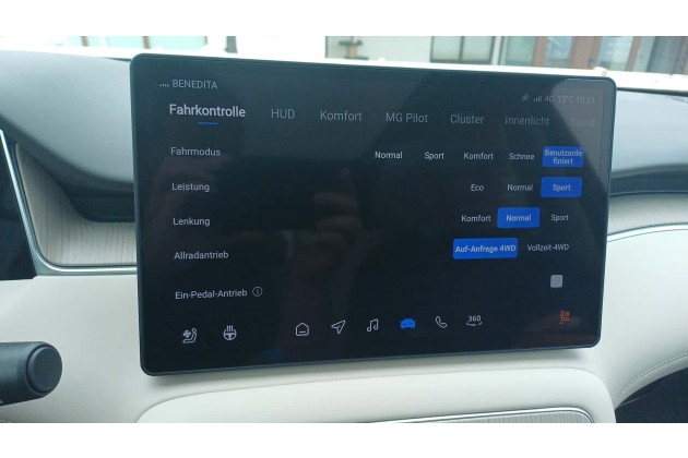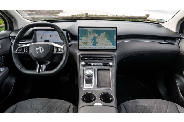 Innen gibt es ein 10,3-Zoll-Instrumentendisplay und einen 12,8 Zoll großen Touchscreen. Dazu erhält der MGS6 EV als erster MG überhaupt ein Head-up-Display. Hier besteht allerdings noch Verbesserungsbedarf bei der Projektionsoptik, denn man sieht die Anzeigen doppelt - als hätte man die falsche Brille auf.
