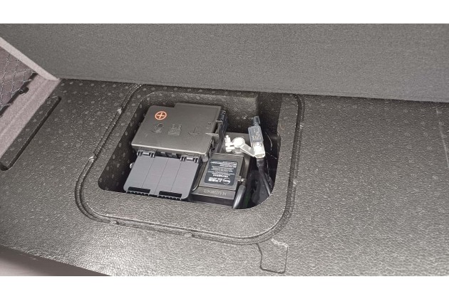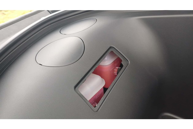 Die Technik ist ähnlich wie beim MG4 EV; insbesondere ist die 77-kWh-Batterie mit NMC-Chemie die gleiche. Wie der Kompaktwagen besitzt auch der MGS6 zwei Kühlkreisläufe - einen für den Antrieb, den anderen für die Batterie. Das kann man an den beiden Behältern mit rosa Flüssigkeit unter der Frunk-Abdeckung sehen. Zugunsten des vorderen Kofferraums befindet sich die 12-Volt-Batterie hier aber hinten; sie liegt unter dem Kofferraumboden.