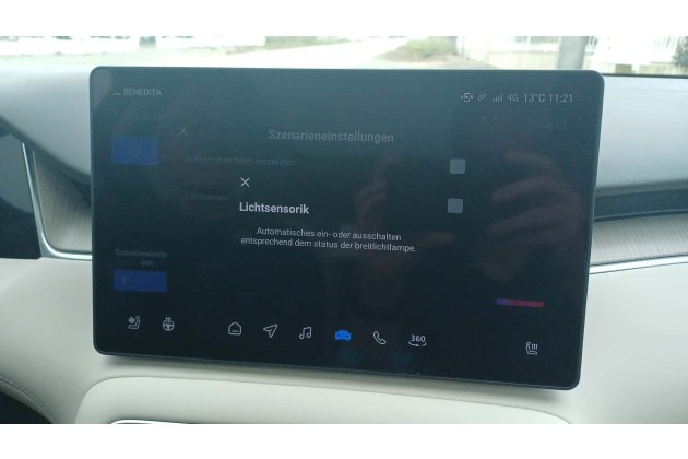 Die Rekuperation lässt sich nur über den Touchscreen einstellen, man kann aber eine der beiden Sterntasten am Lenkrad damit belegen. Dann lässt sich zwischen den Modi Schwach, Mittel, Hoch und Adaptiv umschalten. Es gibt auch einen One-Pedal-Drive-Modus, für den man aber wieder den Bildschirm bemühen muss - ärgerlich. Irritierend auch: Wenn One-Pedal-Drive angewählt ist, erscheinen die anderen Modi nicht. Es bleibt unverständlich, warum man nicht fünf gleichberechtigte Modi anbietet, von Schwach bis One-Pedal-Drive und Adaptiv.