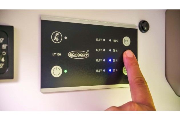 Starter- und Aufbaubatterie verlieren über den Winter häufig an Leistung. Ein Blick auf den Ladezustand und gegebenenfalls ein Nachladen verhindern Startprobleme und Tiefentladung. Wer ein Batteriemonitoring an Bord hat, nutzt es für einen gezielten Check.