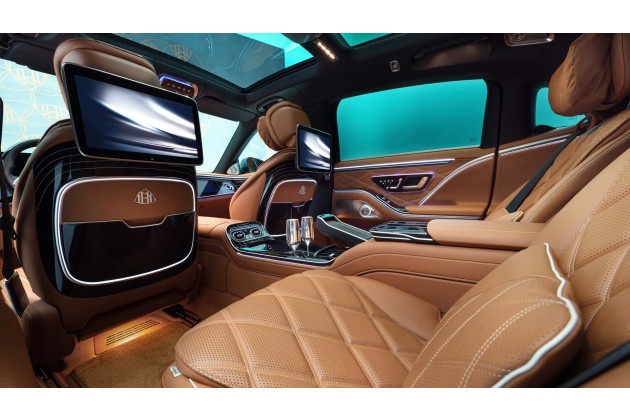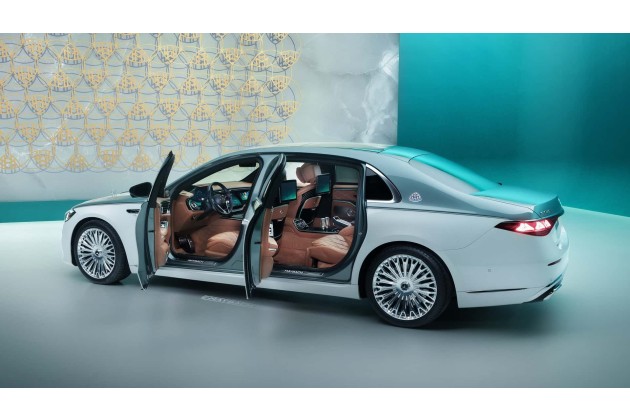 Im Innenraum setzt Maybach neue Akzente beim Thema Materialwahl. Erstmals wird ein komplett lederfreies Interieur angeboten. Zum Einsatz kommt das Textil Mirville, ein Gemisch aus Leinen und recyceltem Polyester, das in Kombination mit dem Kunstleder ARTICO verarbeitet wird. Wer es traditionell mag, kann sich im MANUFAKTUR Made to Measure-Programm austoben, das hunderte Lackfarben und nahezu unbegrenzte Leder-Kombinationen bietet.