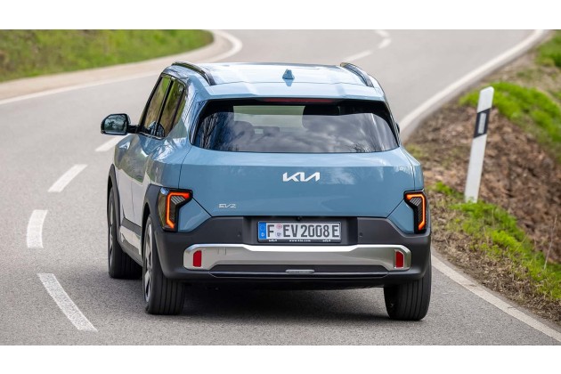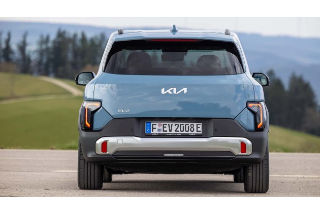 Bekannte Kante an der Front, Experimentierfreude am Heck: So lässt sich die Herangehensweise von Kia ganz gut zusammenfassen. Während der EV2 vorne mit seinem markanten "Star-Map-Design"-Scheinwerfern und der platten Schnauze noch nah bei EV3 und EV9 andockt, wird es hinten wild.