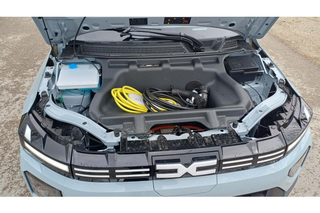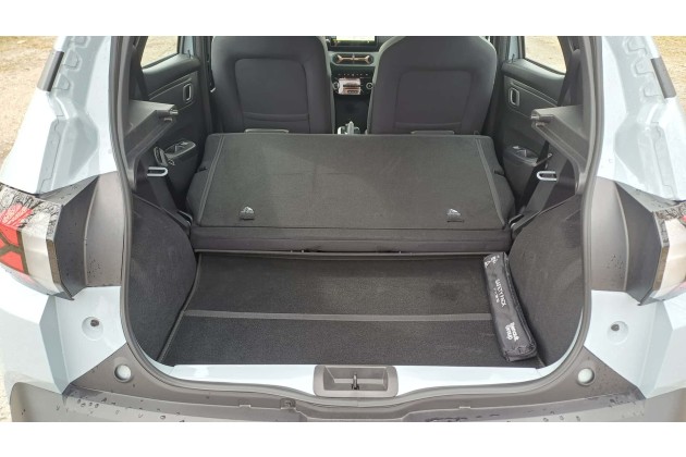 In puncto Kofferraumvolumen bietet der Dacia Spring 288-1.004 Liter, was zwischen dem Platzangebot im Leapmotor T03 (210-880 Liter) und im Citroën e-C3 (310-1.200 Liter) liegt. Die Fondlehne lässt sich nur im Ganzen umklappen, aber das ist beim T03 genauso; beim e-C3 ist die Fondlehne erst ab der gehobenen Version Plus geteilt. Zudem hat der Spring einen kleinen Frunk, der für Ladekabel oder ähnlichen Kleinkram reicht.