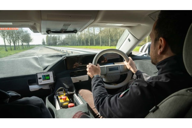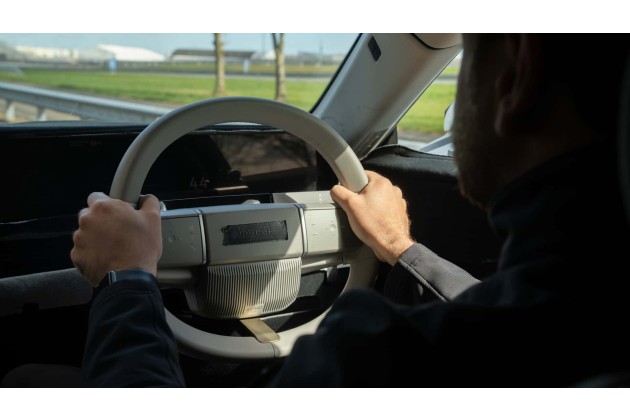Eine digitale Justierung im Tesla-Stil, um das Lenkrad einzustellen, dann schiebe ich den Hebel hinter einer Lenkradspeiche auf D. Mehr kann ich zu den Innenraum-Details des Autos, das ich hier fahre, nicht verraten - der Prototyp ist getarnt, aber praktisch schon in Seriennähe.