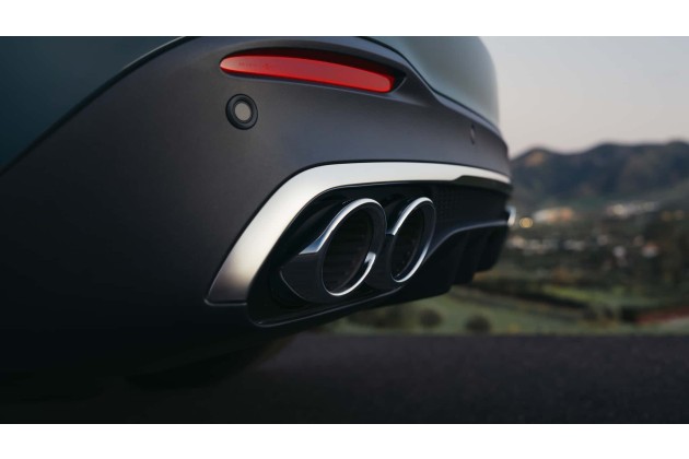 Am Heck prangen nun neu geformte Rückleuchten im bekannten markanten Sternen-Design, abgerundet durch die typische Abgasanlage mit Doppelendrohrblenden. Wer farblich auffallen möchte, kann für den AMG erstmals die Sonderlackierung "Hightechsilber magno" ordern.
