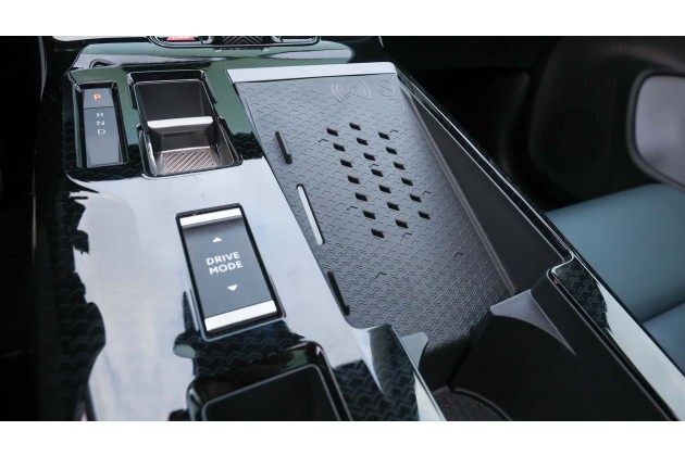 Dann kommen die Brüche. Oberseite des Armaturenträgers und die wie kleine Tragflächen herausragenden Lautsprecherkapseln bestehen aus glattem Hartplastik. Das wirkt optisch speziell und haptisch billig. Der Innenraum pendelt damit permanent zwischen "fast Premium" und "war da kein Budget mehr übrig". Konsequent ist das nicht.