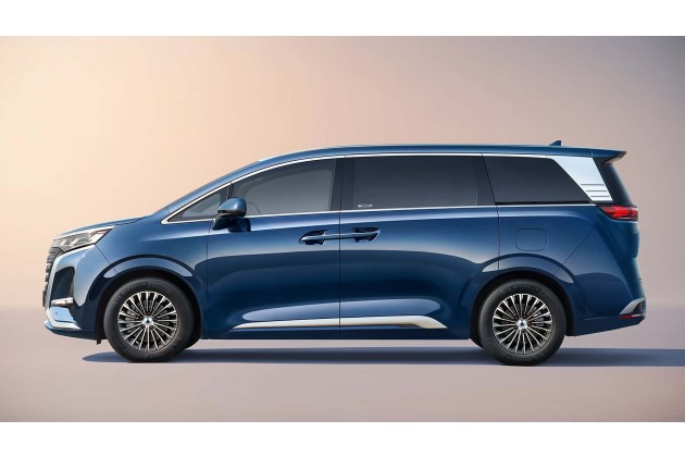 Optisch bleibt der D9 klassisch: 5,25 Meter Länge, hoher Aufbau, große Glasflächen. Wer mag, kann leichte Parallelen zum Lexus LM erkennen. An der Front des Denza dominiert ein großer Kühlergrill mit Metallrahmen, an der Seite liegen die Schienen der Schiebetüren verdeckt in der Karosserie. Die elektrische Heckklappe öffnet zu einem variablen Gepäckabteil, je nach Sitzstellung stehen zwischen 430 und 2.310 Liter Stauraum bereit. Auch mit allen sieben Sitzen in Nutzung passt noch Urlaubsgepäck hinein.