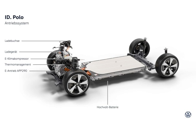 Auch beim Fahrwerk setzt VW auf bewährte Technik. Zum Einsatz kommt zwar auch hier ein neu auf den Frontantrieb des ID. Polo entwickeltes und abgestimmtes Fahrwerk, der Aufbau ist jedoch typisch Volkswagen. Ziel war auch hier unter hoher Kosten-, Raum- und Gewichtseffizienz eine optimale Lösung zu konzipieren.