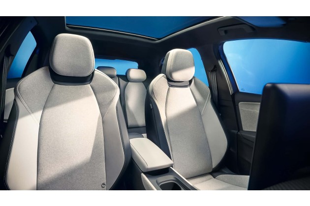 Auf der Mittelkonsole warten Smartphone-Ablage mit einer ausstattungsabhängig induktiven Lademöglichkeit, zwei Getränkehalter und eine Mittelarmlehne mit integriertem Staufach. Im Sichtbereich wurden aufgepolsterte Stoffbahnen an Armaturenbrett, Türverkleidung und Mittelkonsole angebracht.