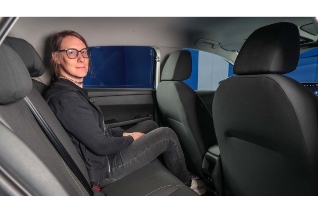 Alle Textilien der Sitze, Türen, des Dachhimmels und der Teppiche bestehen zu 100 Prozent aus sogenannten rPET-Materialien (recyceltes Polyethylenterephthalat), die zumeist aus PET-Flaschen gewonnen werden. Insgesamt wirkt all das in der ersten Sitzprobe komfortabel und qualitativ hochwertig. Und auf der Rückbank in Sachen Kopf- und Beinfreiheit durchaus über gewohntem Klassenschnitt.