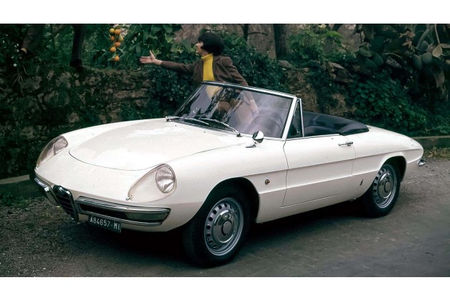 Die erste Begegnung der Öffentlichkeit mit dem 4,25 Meter langen Alfa Romeo Spider 1600 (80 kW/109 PS) gleicht einem Kulturschock. Die Fachwelt ist gespalten; vielen Alfisti ist der Bruch mit der Vergangenheit zu radikal, das konvexe Profil mit der tiefen Gürtellinie zu futuristisch. Unter der Haube arbeitet derweil bewährte Technik: Das Herz der Giulia Sprint GT Veloce sorgt für beachtliches Temperament.