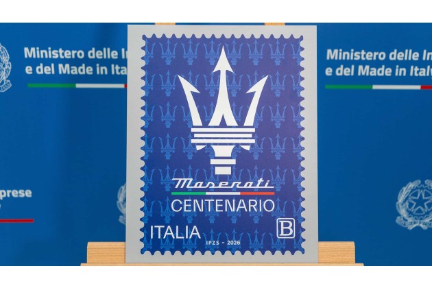 Diese ist Teil der staatlichen Serie "Exzellenz des Produktions- und Wirtschaftssystems". Der Entwurf der Marke stammt vom Maserati Centro Stile und kombiniert die aktuelle Version des Dreizacks im Vordergrund mit einem Hintergrundmuster des ursprünglichen Logos aus dem Jahr 1926 sowie dem ergänzenden Schriftzug "CENTENARIO".
